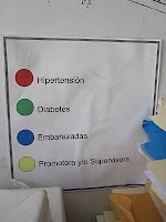 I thought that by far the most interesting part was the second year experience: essentially each second year Family Medicine resident is assigned a small community in Santiago or the surrounding area and is responsible for the health of that community. The resident sees their patients both in the hospital and in their homes; what better way to really understand your patients? Each resident makes a map of his or her community and denotes with push pins the medical problems that each member of the community has – for instance every one with HTN gets a red pin, everyone with DM gets a green pin, etc. The maps make for a unique representation of the health of each resident’s community. Based on the diseases prevalent in their community, the residents (with assistance from their community health workers) develop educational sessions to improve health literacy and the general health of their community. I loved the maps – here are two of my favorites with close ups of the legends.